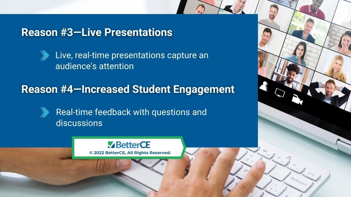 Callout 2: Live webinar on laptop- Reasons #3, #4 are listed with 2 facts