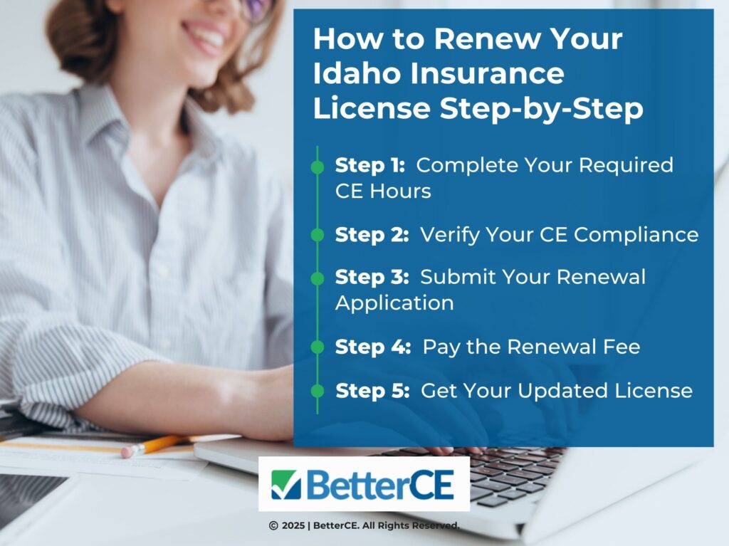 The first step is to know your CE Requirements. Knowing what you need to complete helps you plan better and avoid surprises. BetterCE makes this process easy. On our State Requirements Pages, you can view your state-specific CE requirements, view your CE transcript, access your renewal application, and locate a variety of resources to help you easily manage your insurance license..