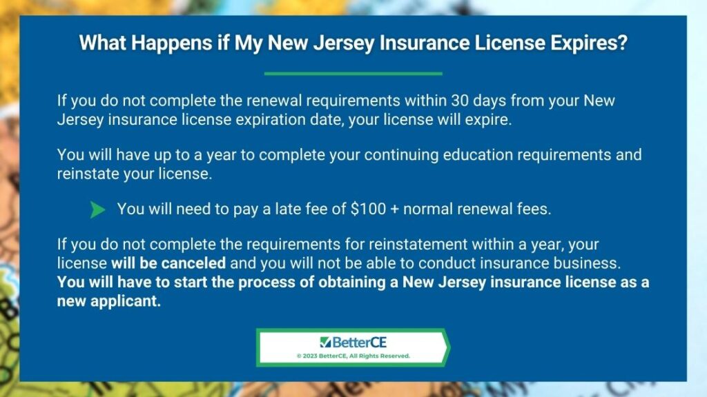 If you don’t complete your renewal requirements prior to your license expiration date, your license will become inactive, and you won’t be allowed to conduct insurance business. However, you have up to 2 years to reinstate your license as long as you: