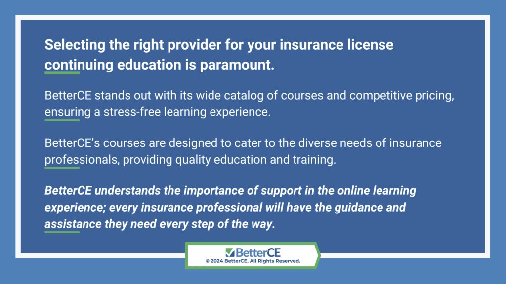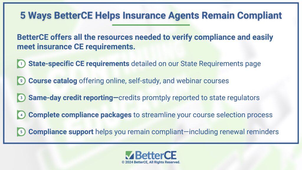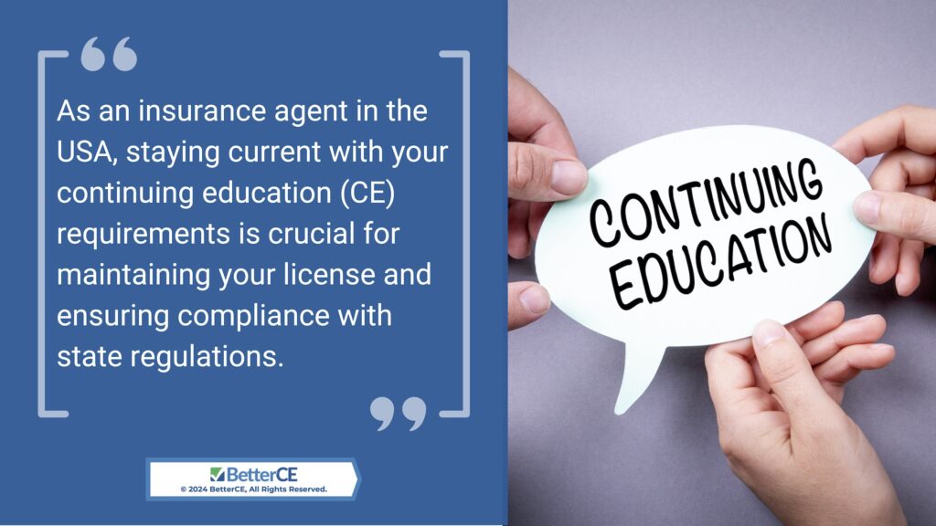 Becoming and staying licensed as an insurance agent in the United States involves two distinct phases of education: prelicensing and continuing education (CE). At BetterCE, we help licensed professionals meet their insurance CE requirements through online, text-based courses and live webinars.