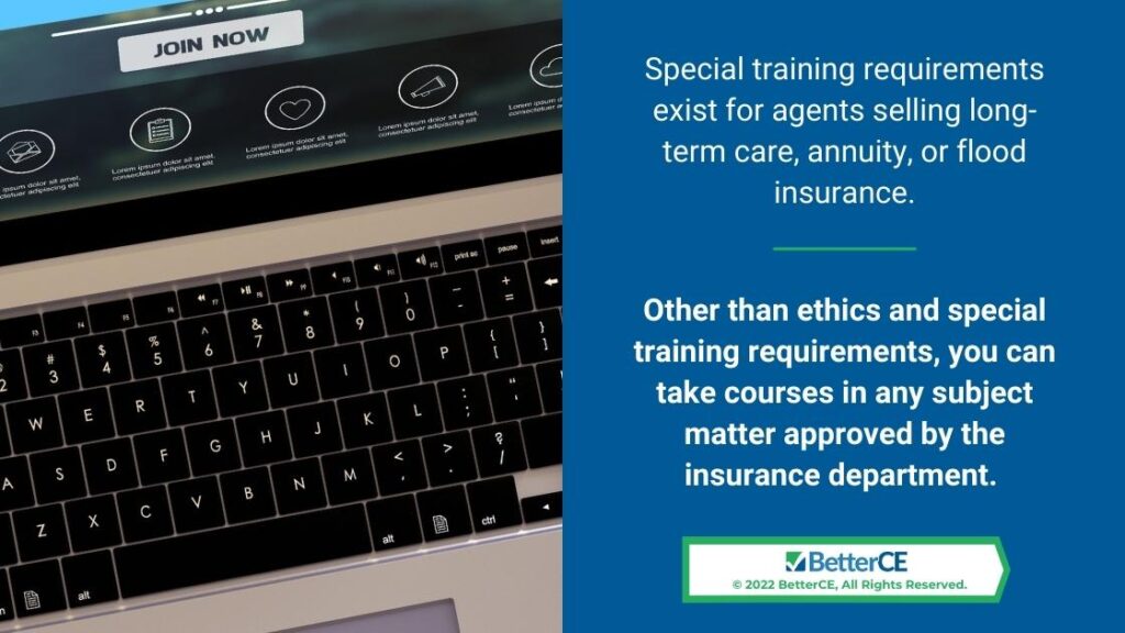 Special training requirements exist for agents selling long-term care, annuity, or flood insurance.