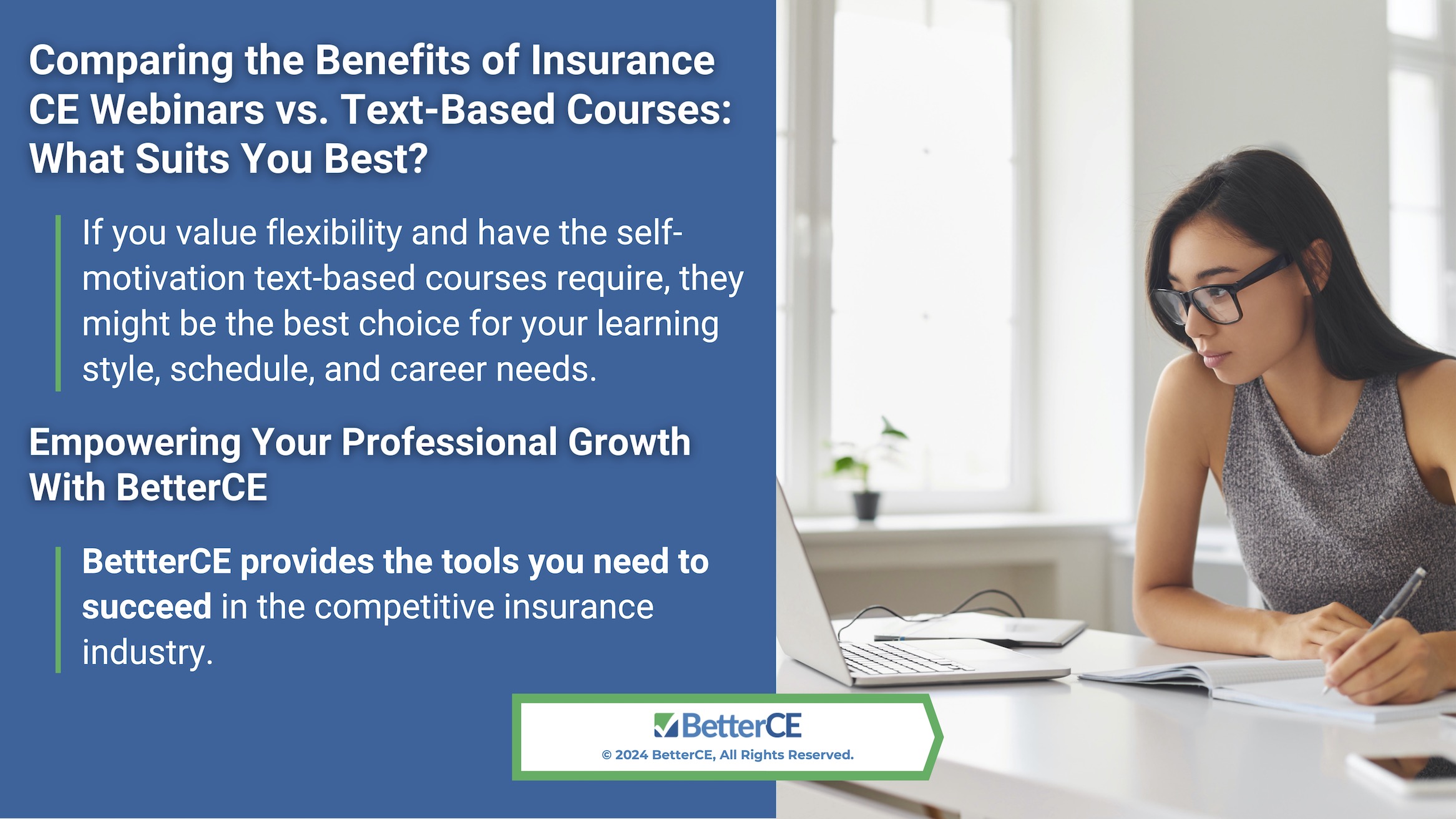 Better CE_Callout 3 – Pros and Cons of Text-Based Insurance Continuing Education vs. Insurance CE Webinars – adjusted Posted on 05.23.24