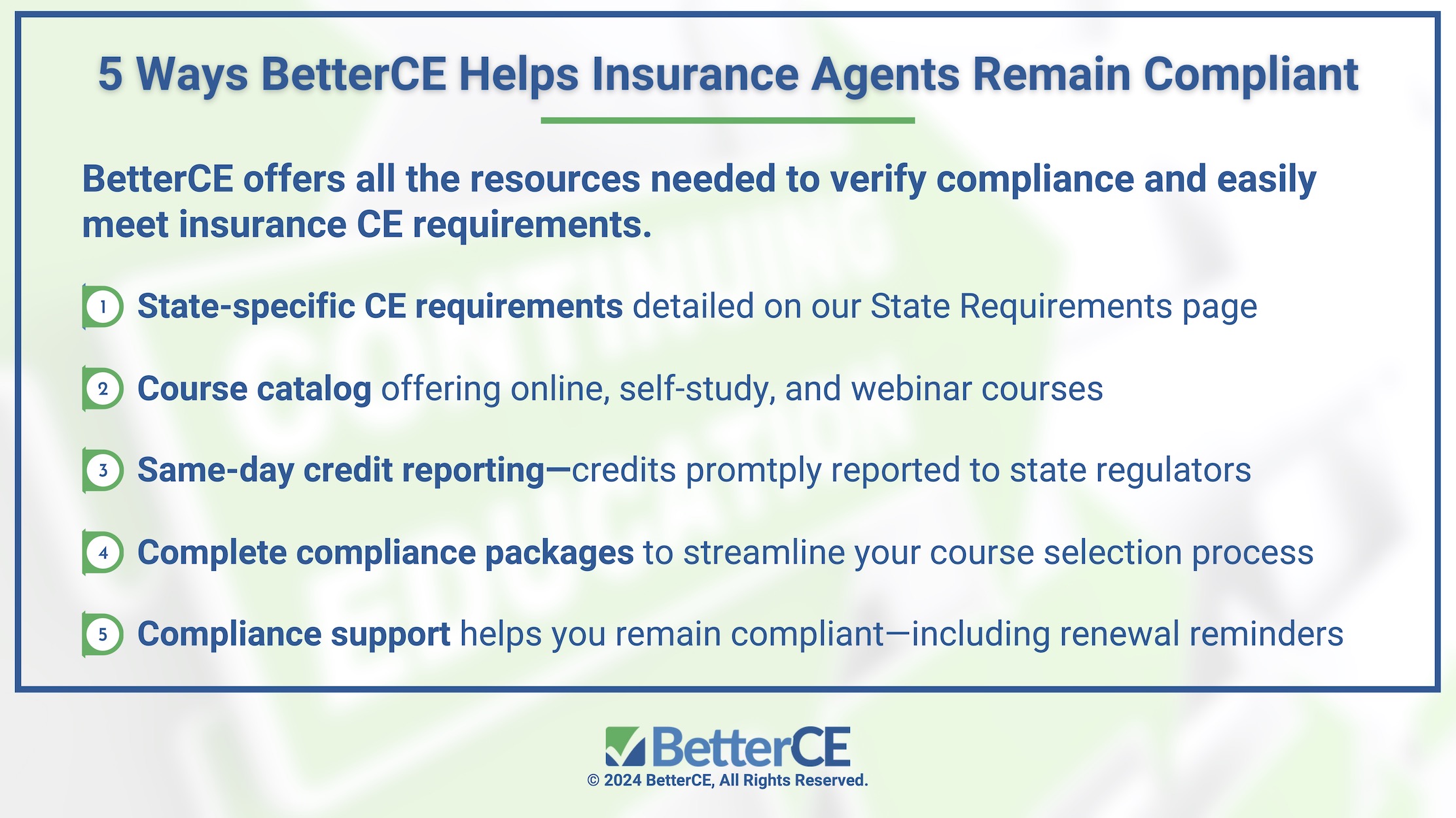 Callout 2: Five ways Better CE helps insurance agents remain compliant