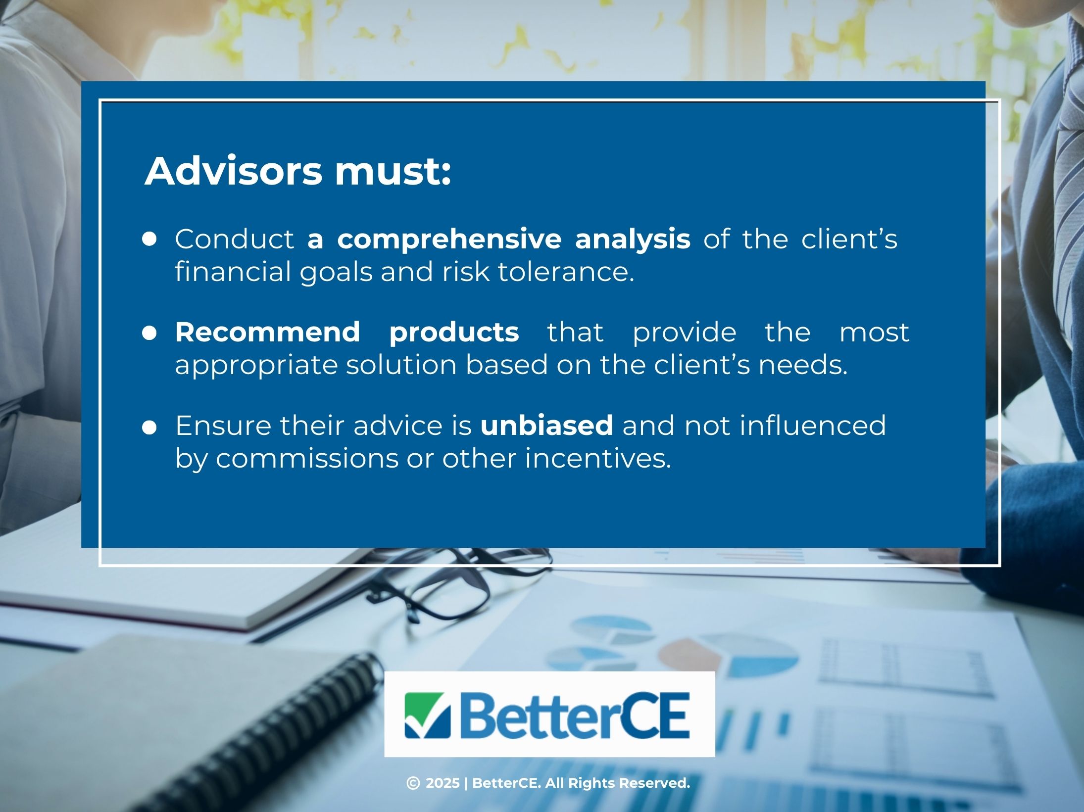 Under the Best Interest Standard, advisors must advise in three ways which are listed.