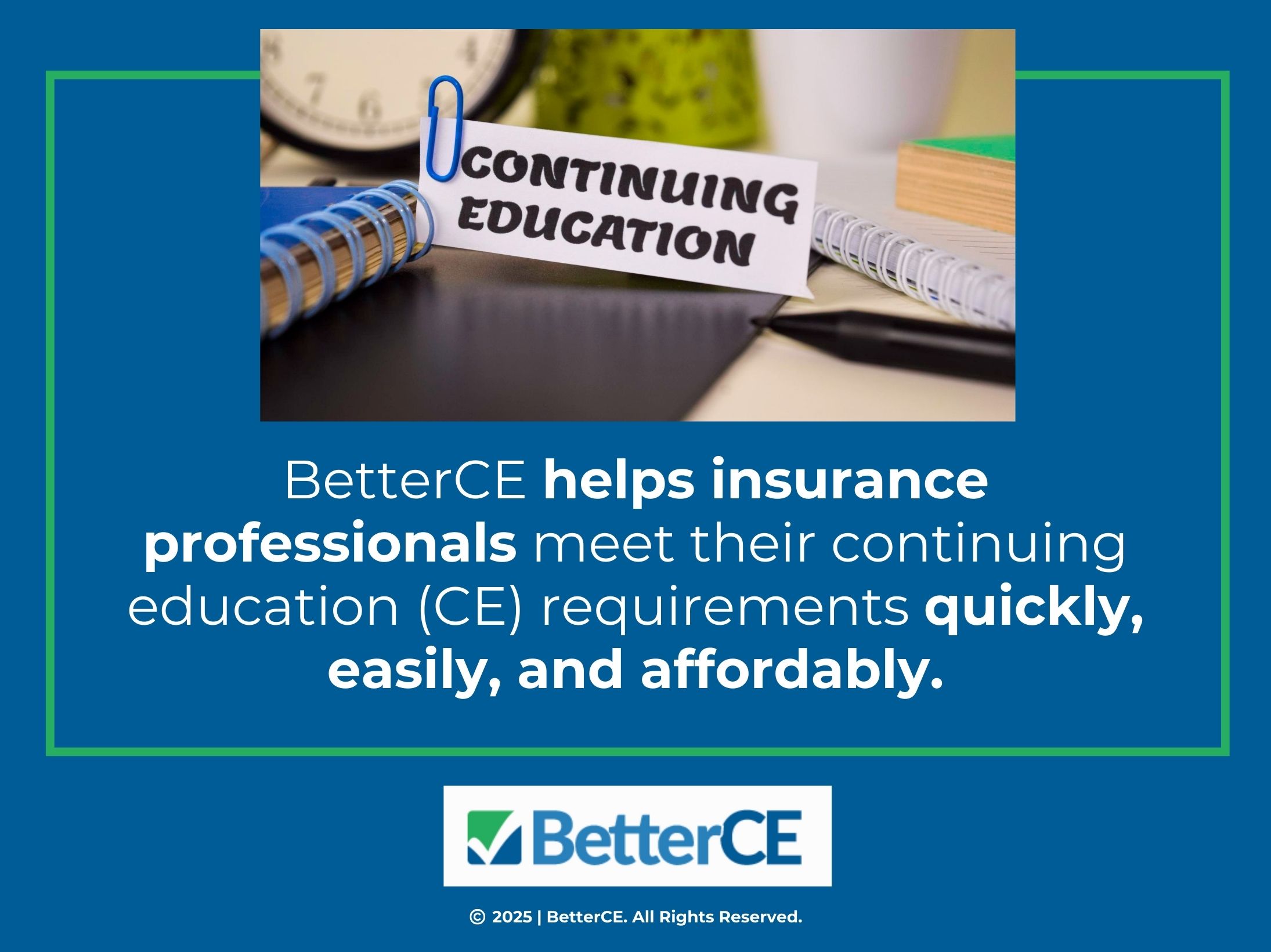 CO1_ BetterCE helps insurance professionals meet their continuing education (CE) requirements quickly, easily, and affordably Posted on 04.30.25