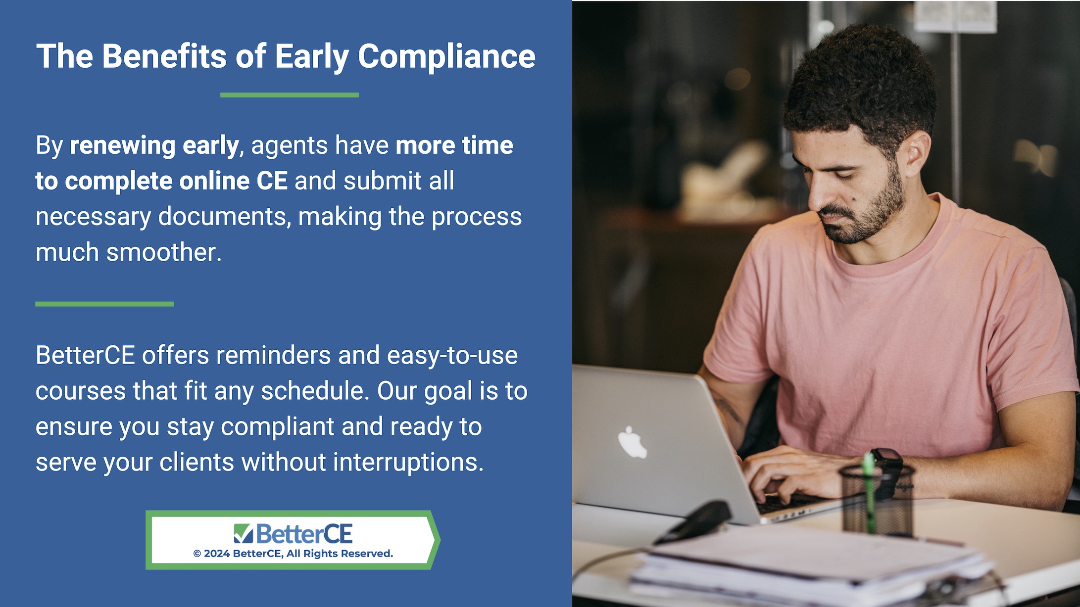Callout 3: Man working at laptop- two benefits of early insurance renewal compliance