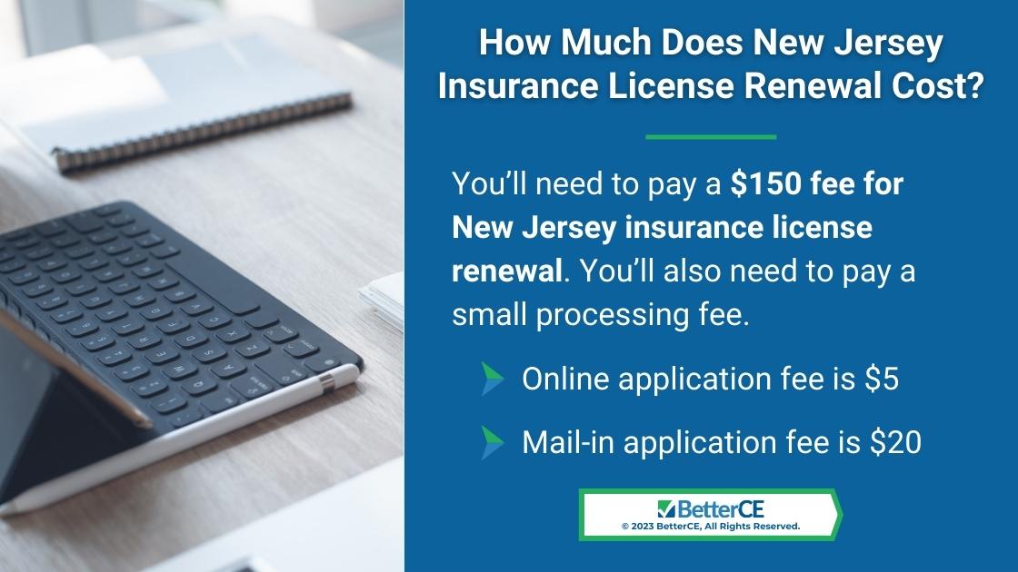 Callout 2: Laptop on desk for online class- How much does New Jersey insurance license renewal cost? 3 facts listed